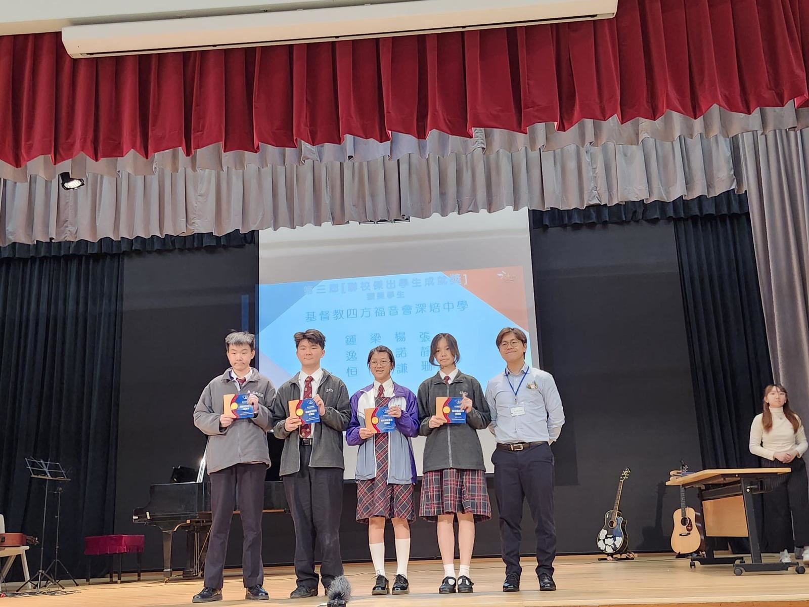 2A李家強、2B彭嘉琪、2C何清怡、3A陳沛臻、3B王日升、3C吳筠晴、4A黃裕朗、4A林皓朗、4A湯業峰、5A盧嘉晋、5B黃昭婷、5C黃俊軒、5D陳格蕊、6A譚倩宜、6B馮坤銘、6C黃梓俊、6D許浩天