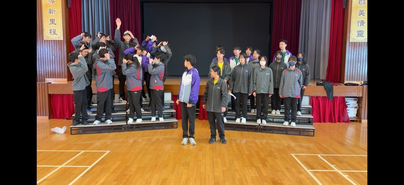 Six students from class 2A took part in the Speak Up – Act Out SUAO Drama Competition 2025/26, organised by the EDB NET Section. This competition challenges teams of four to six students to devise a 4–5 minute improvised drama based on a given stimulus, and they have just two weeks to prepare. It was no small feat. No scripts, costumes, props, or make-up are permitted—only two chairs and the students’ own creativity.