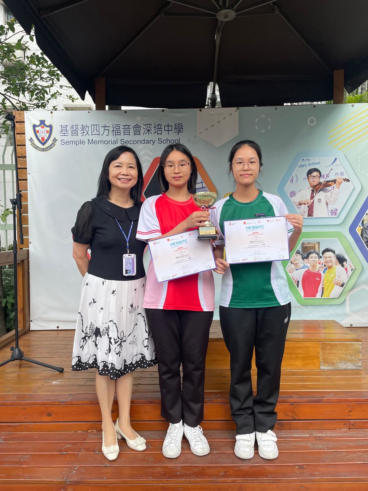 早前本校兩位中五級學生黃傲淇和葉穎妍同學參加了由香港青年協會、教育局、香港科學館合辦的香港學生科學比賽2025。經過一連串的工作坊、導師諮詢和比賽,兩位同學在發明品專案設計組別取得一等獎。