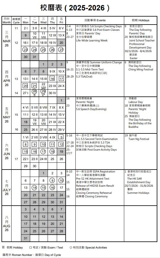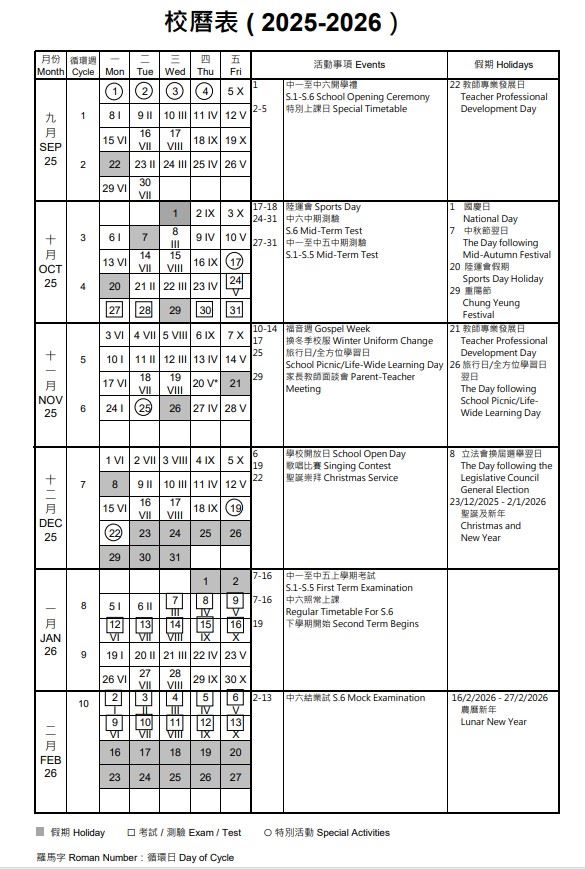 校曆表
