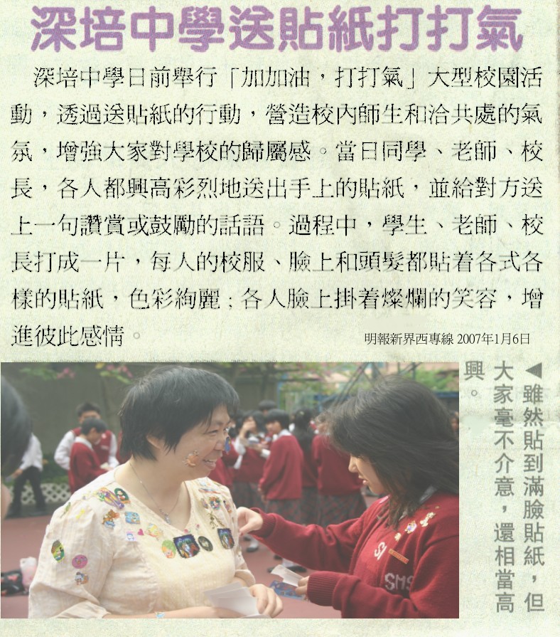 深培中學送貼紙打打氣