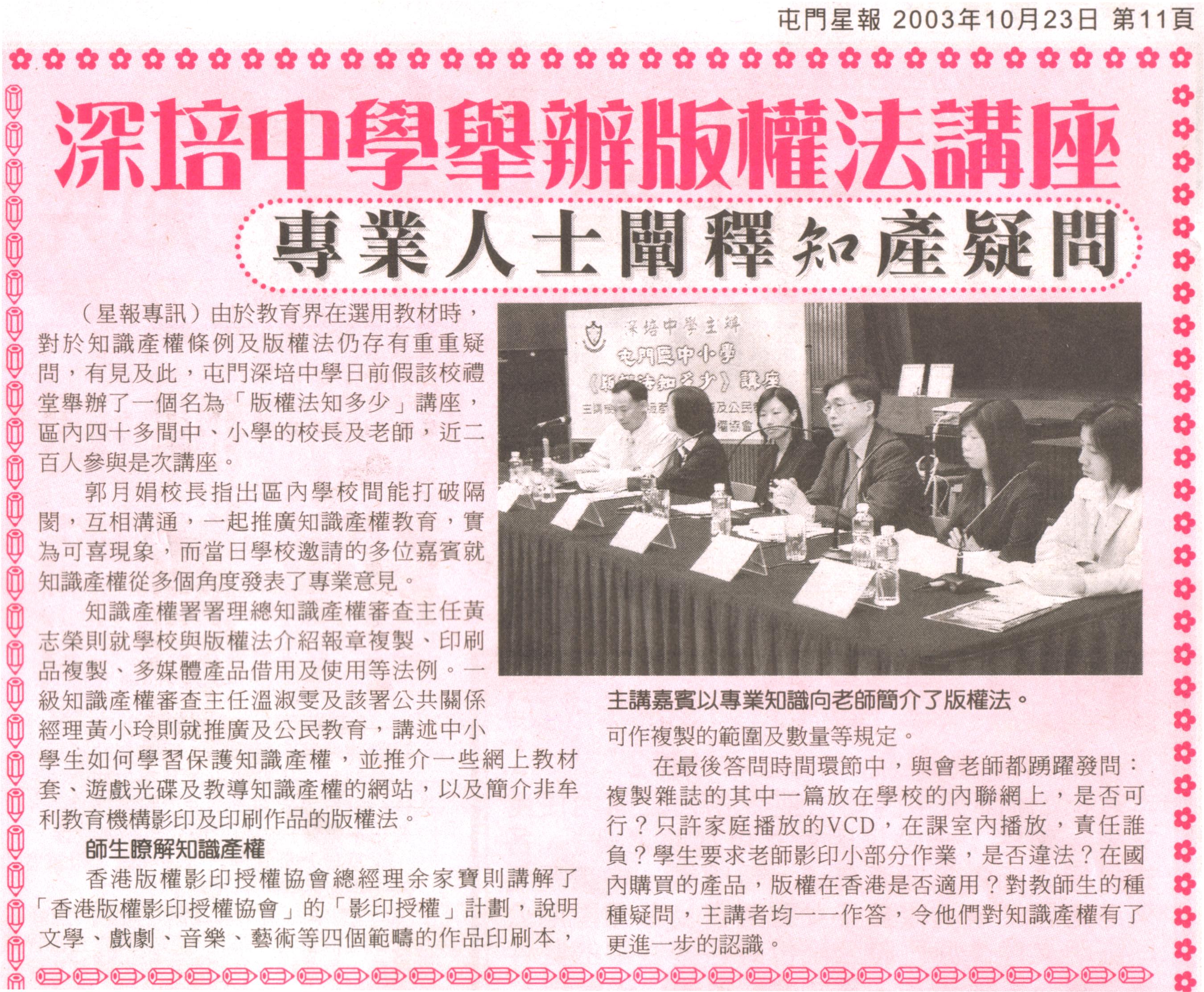 深培中學舉辦版權法計座