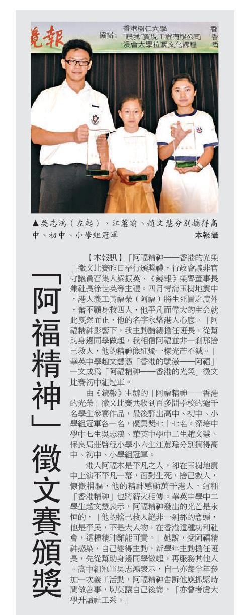 「阿福精神」徵文賽頒獎